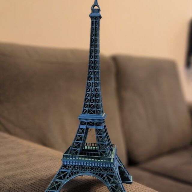Beeldje van de Eiffeltoren. Het beeldje is van hard plastic (PLA). Verkrijgbaar in verschillende kleuren. Staat de kleur die je wil hebben er niet tussen? Zoek dan contact met ons op zodat we hem kunnen maken met de gewenste kleur.
